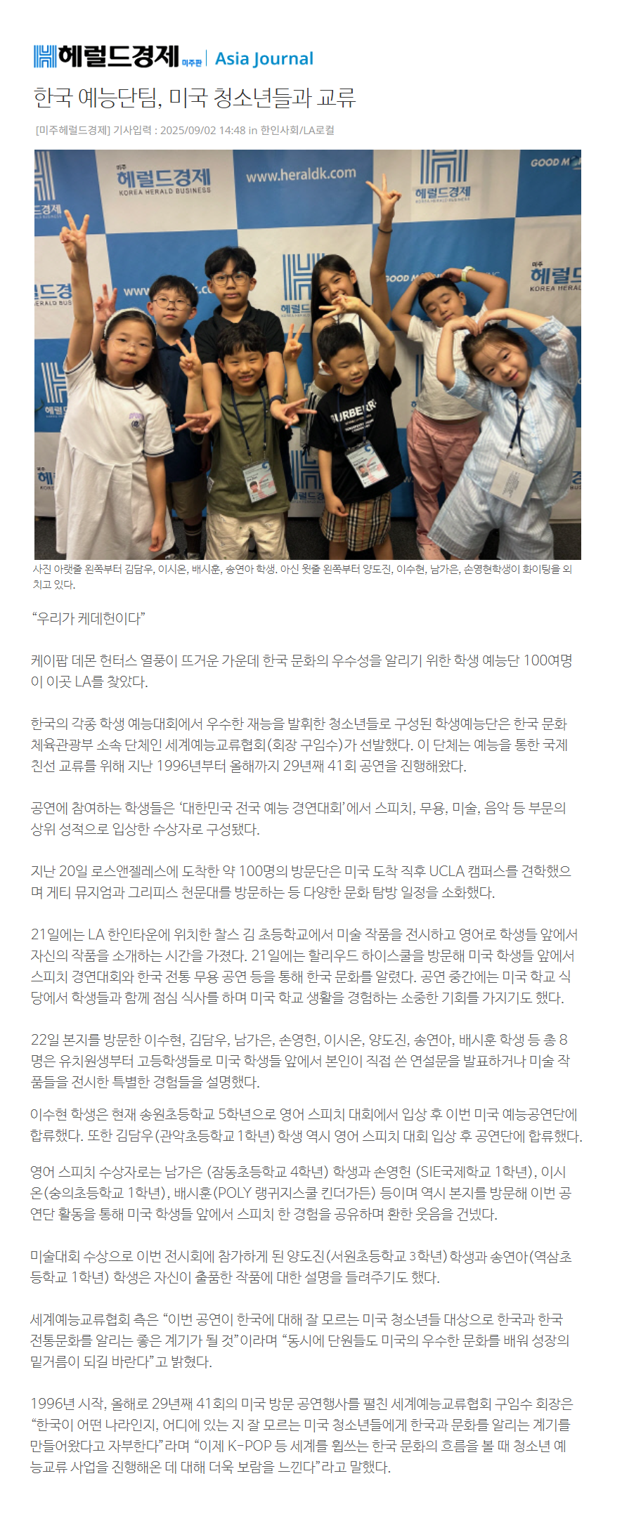 Çѱ¹¿¹´É´ÜÆÀ, ¹Ì±¹ û¼Ò³âµé°ú ±³·ù-Çì·²µå°æÁ¦(2025.08)